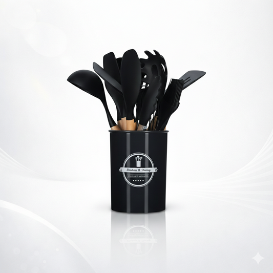 Kit 12 Utensílios de Cozinha - Silicone e Cabo de Madeira