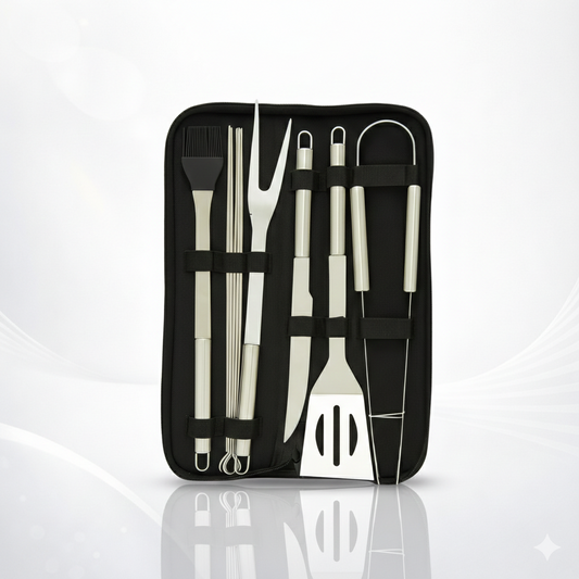 Kit Churrasco/Cozinha 9 Peças Inox C/ Maleta