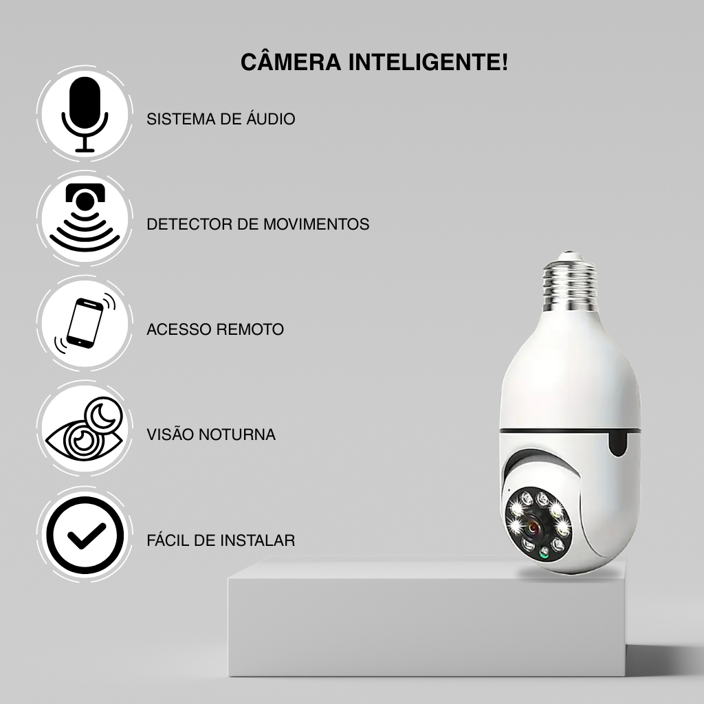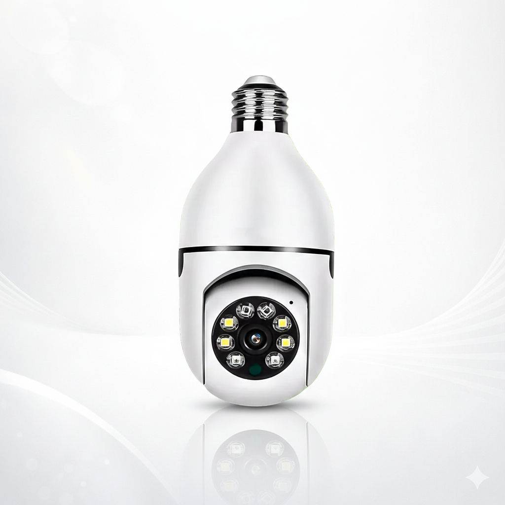 - Instalação simples e design discreto: Basta rosquear a câmera em um bocal de lâmpada comum — sem necessidade de ferramentas ou técnicos. Com formato e tamanho semelhante ao de uma lâmpada de LED convencional, ela se integra facilmente ao ambiente de forma discreta e funcional